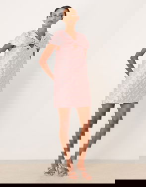 Cameo Floral Jacquard Bow Cape Sleeve Mini Dress In Pink