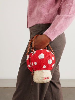 Shroom Leather-trimmed Beaded Satin Tote
