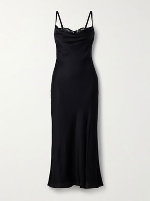 Evangeline Lace-trimmed Draped Stretch-silk Midi Dress