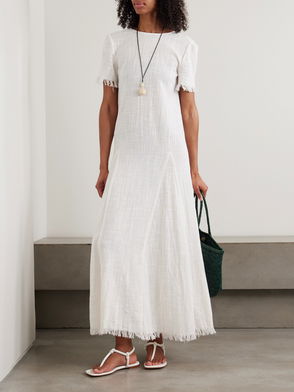 Hightide Strapless Asymmetric Gathered Cotton And Ramie-Blend Maxi Dress