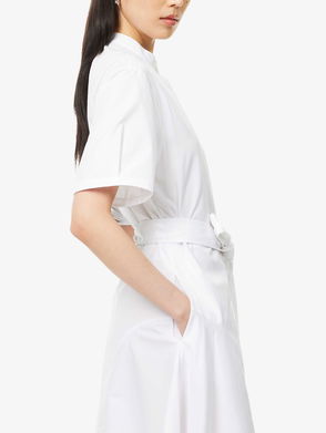 Logo-Embroidered Short-Sleeve Belted Cotton-Poplin Midi Dress