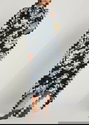 Asymmetric Floral-Print Crepe De Chine Midi Skirt