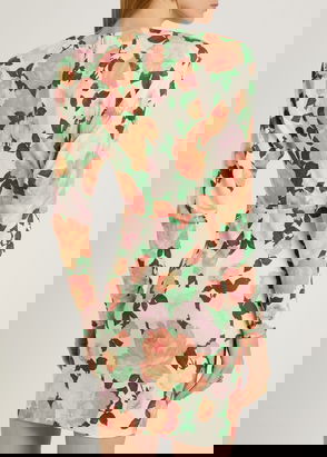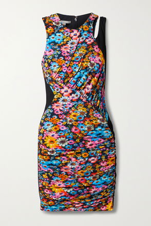 Melissa Ruched Floral-Print Stretch-Jersey Mini Dress