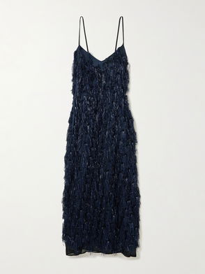 Metallic Fringed Organza Midi Dress