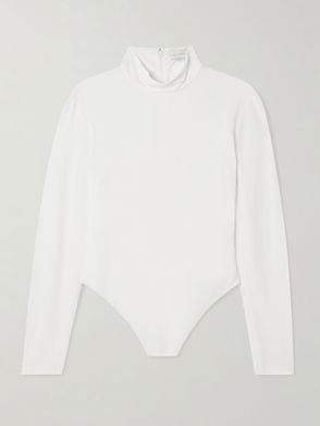 Lace-Trimmed Ruched Stretch Recycled-Jersey Bodysuit