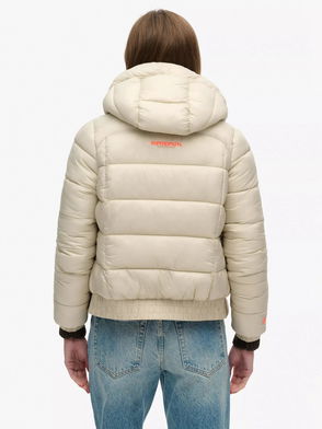Hooded Sports Puffer Mid Length Jacket, Winter Twig Beige