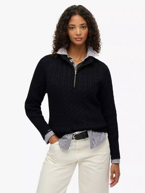 Essential Embroidered Knitted Half Zip Jumper, Black