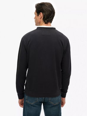 Service Supply Loose Crew Neck Cotton Sweatshirt, Washed Black