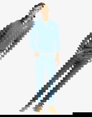 Fuji Fleece Half Popper Jumper In Washed Denim Blue