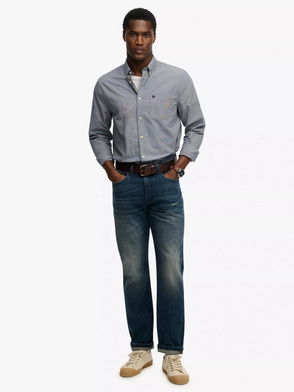 Poplin Cotton Regular Fit Dogtooth Shirt, Navy