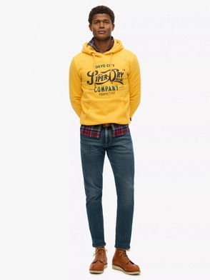 Cotton Blend Leather & Boot Co Script Hoodie, Grey Marl