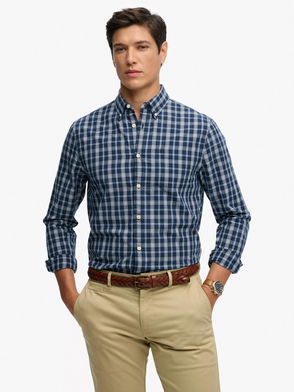 Poplin Cotton Regular Fit Check Shirt, Wainscott Navy