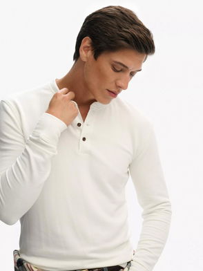 Cotton Blend Regular Fit Long Sleeve Grandad Top, Ecru