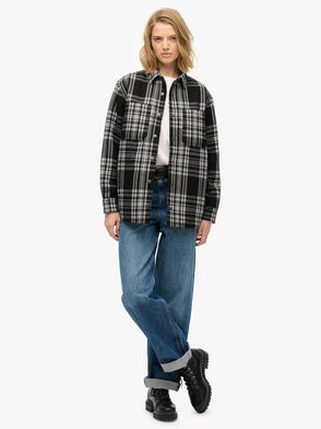 Hooded Ripstop Longline Gilet In Khaki Grid