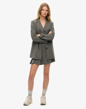 Pinstripe Boyfriend Blazer In Grey Pinstripe
