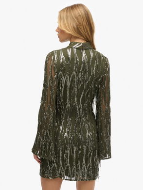 Fringe Sequin Mini Dress, Dusty Olive Green