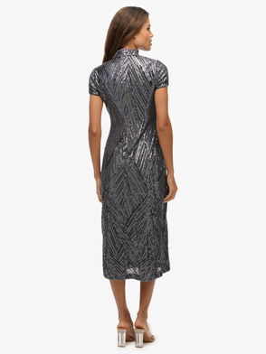 Sequinned Mock Neck Mini Dress In Gunmetal Sequin