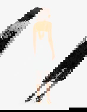 Devore Cowl Neck Midi Slip Dress In Black Floral