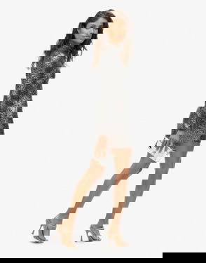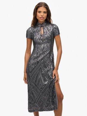Sequinned Mock Neck Mini Dress In Gunmetal Sequin
