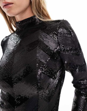 Chevron Open Back Midi Dress In Black Deco Sequin