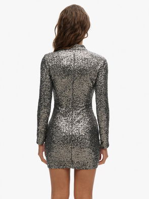 Sequin Mock Neck Mini Dress, Gunmetal Sequin