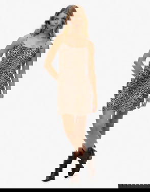 Bias Cut Mini Slip Dress In Diagonal Leopard