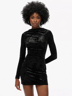 Velvet Long Sleeve Mini Dress, Black