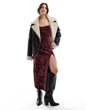 Lace Back Velvet Midi Dress In Mulled Grape