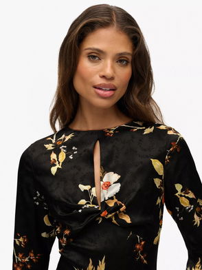 Floral Sheer Midi Dress, Crane Black