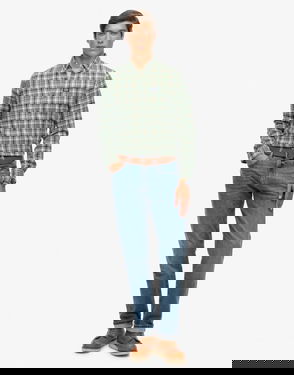 Long Sleeve Cotton Lumberjack Shirt In Green Check