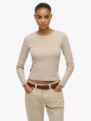 Athletic Essentials Logo Garment Dyed Ribbed Top, Off Grey