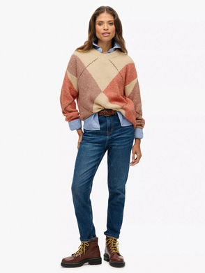 Oversized Argyle V Neck Jumper, Multi