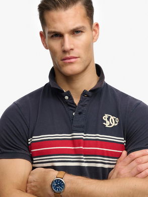 Vintage Athletic Stripe Rugby Top In Eclipse Navy/track Gold