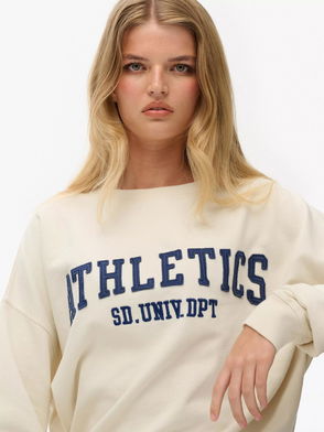 Athletic Essentials Applique Crew Sweatshirt, Desert Bone Offwhite