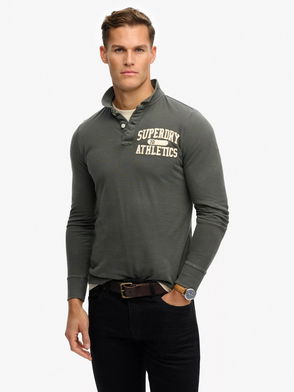 Vintage Athletic Long Sleeve Polo Shirt, Dark Shadow Grey