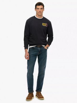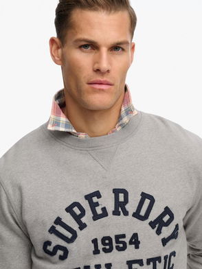 Vintage Athletic Crew Sweatshirt, Light Grey Marl/Navy
