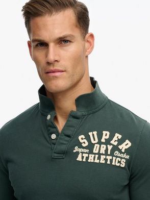 Vintage Athletic Long Sleeve Polo In Eagle Green