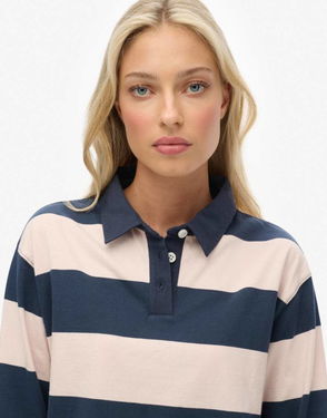 Athletic Essentials Cropped Stripe Rugby Top In Lauren Navy/pink Stripe