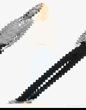 Athletic Essentials Cropped Stripe Rugby Top In Ecru Stripe