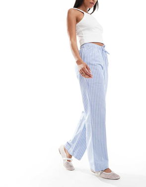 Cotton Stripe Elasticated Trousers In Broker Blue Stripe