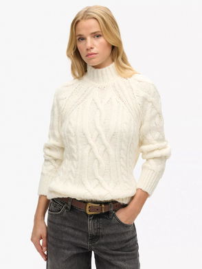High Neck Cable Knit Jumper, Off White