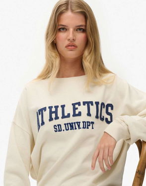 Athletic Essentials Relaxed Applique Sweatshirt In Desert Bone Off White