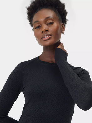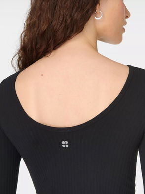 Mindful Flex Boat Neck Long Sleeve Top, Black