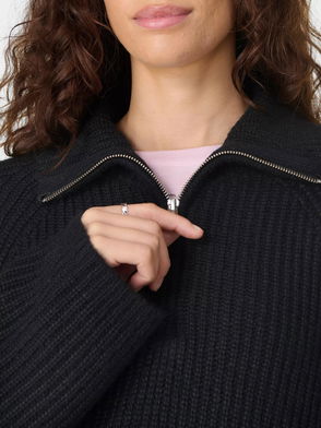 Knitted Funnel Neck Half Zip Wool Blend Jumper, Black