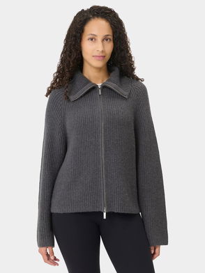 Knitted Funnel Neck Zip Up Wool Blend Jumper, Charcoal Grey