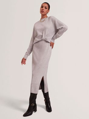 Samana Twist Front Wool Blend Midi Dress With Cashmere, Grey