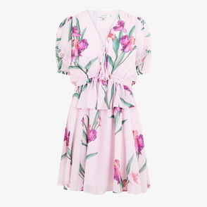 Elann Floral Print Pussybow Tie Neck Midi Dress