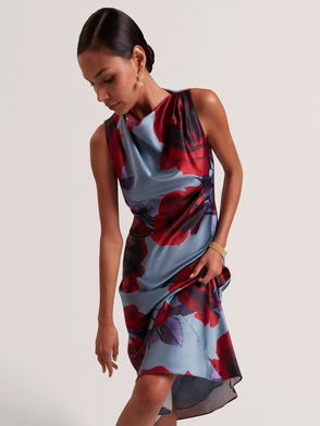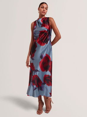 Harrlia Sleeveless Cowl Neck Midi Dress, Blue/Multi