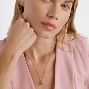 Ribah Crystal Ribbon Bow Pendant Necklace, Gold
