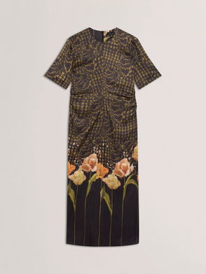 Lovesa Bold Floral Print Hourglass Maxi Dress, Navy/Multi